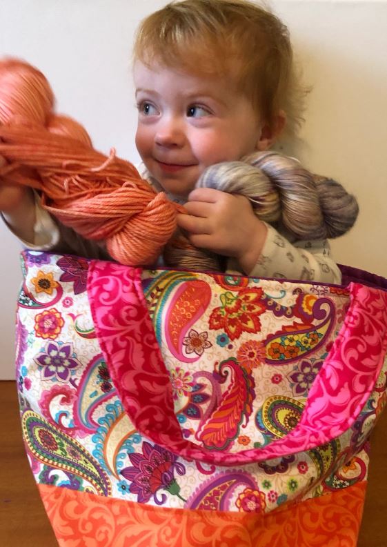 This is a super large Blanket or Sweater Bucket. Perfect for holding a blanket or sweater project and all your yarn and notions. Also really great for a multiple projects that are in their own bags.