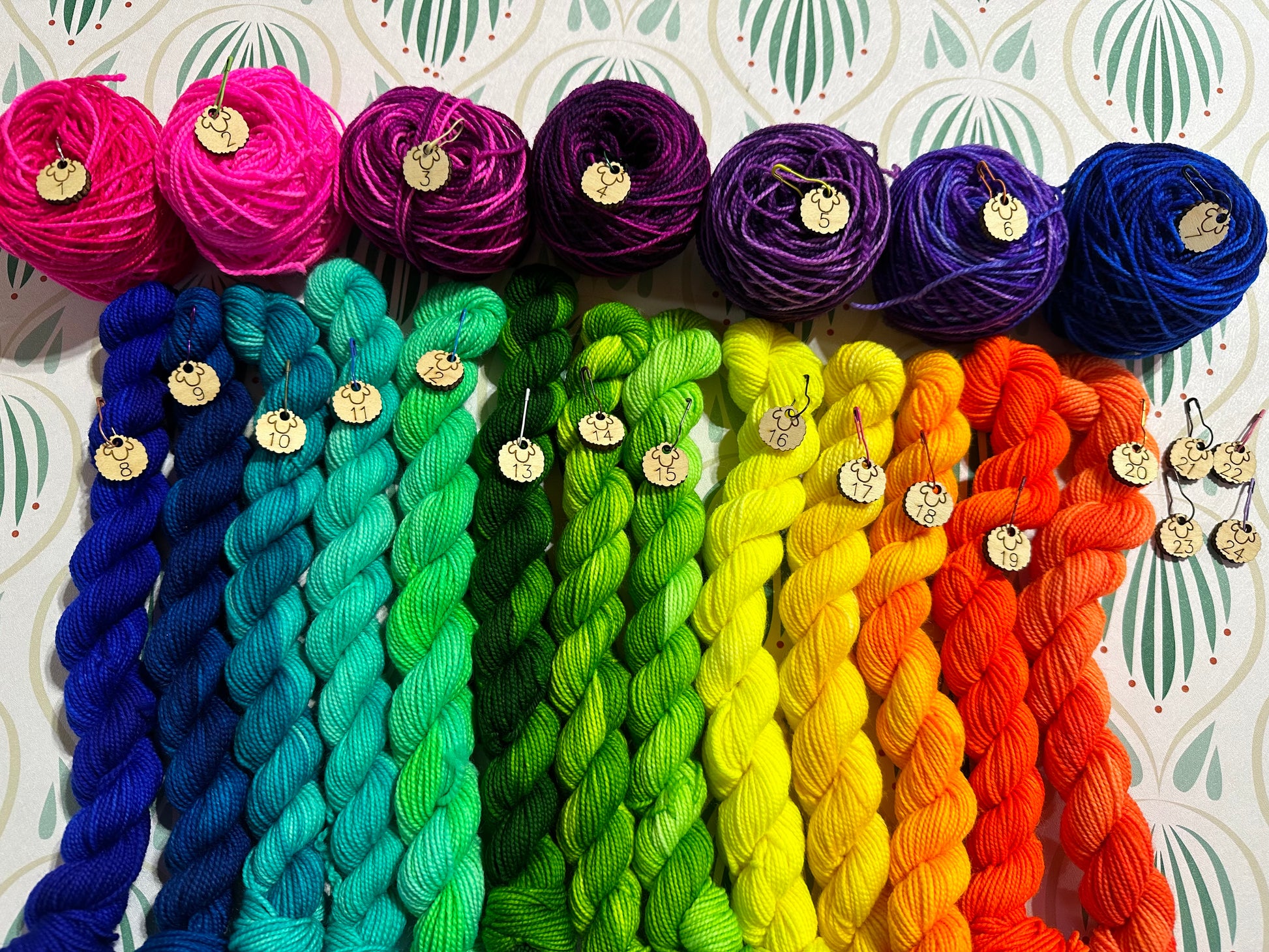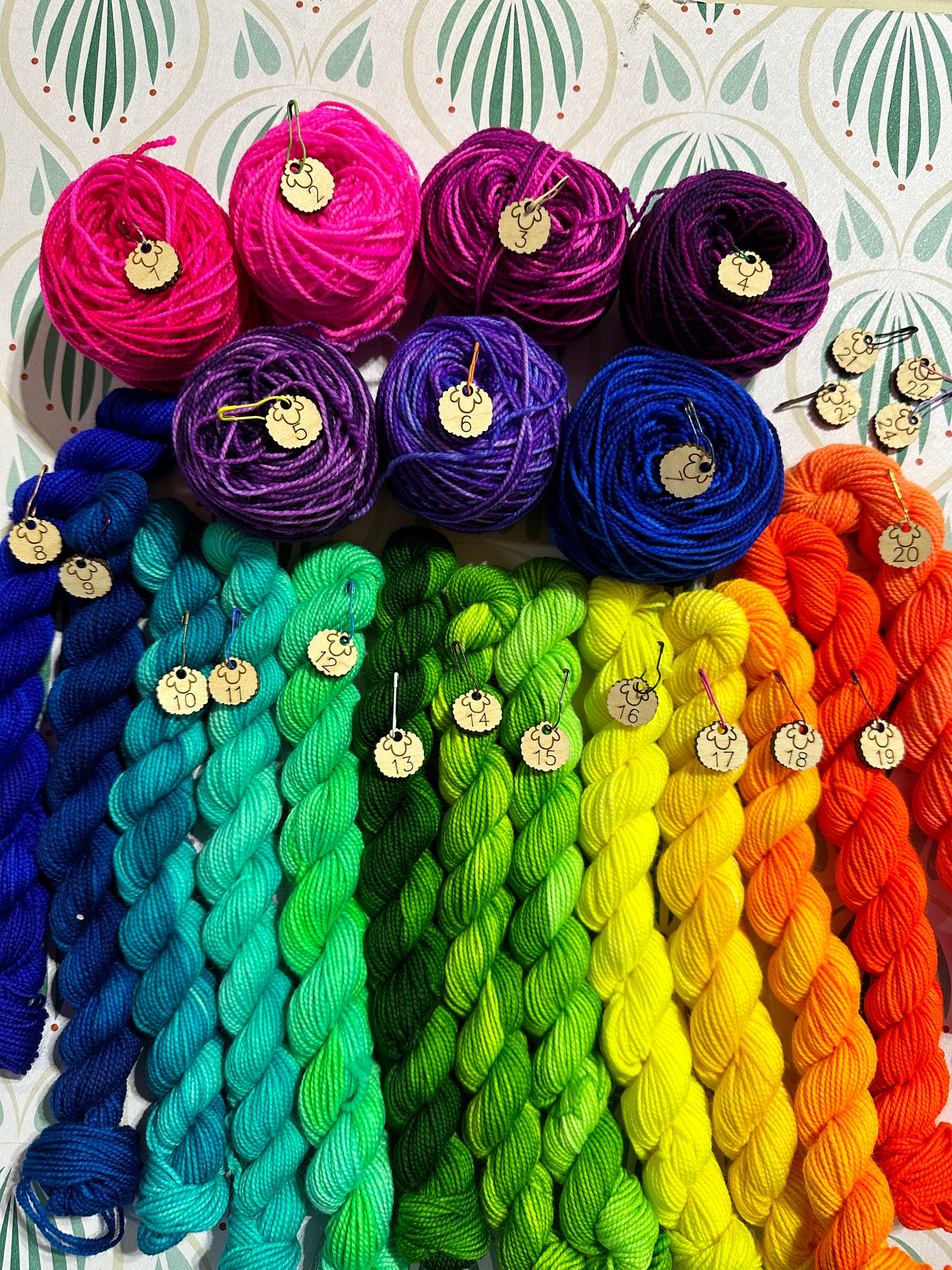 Don't loose track of which yarn is which date again with these numbered markers. Easily added or removed with the lightbulb clasp.