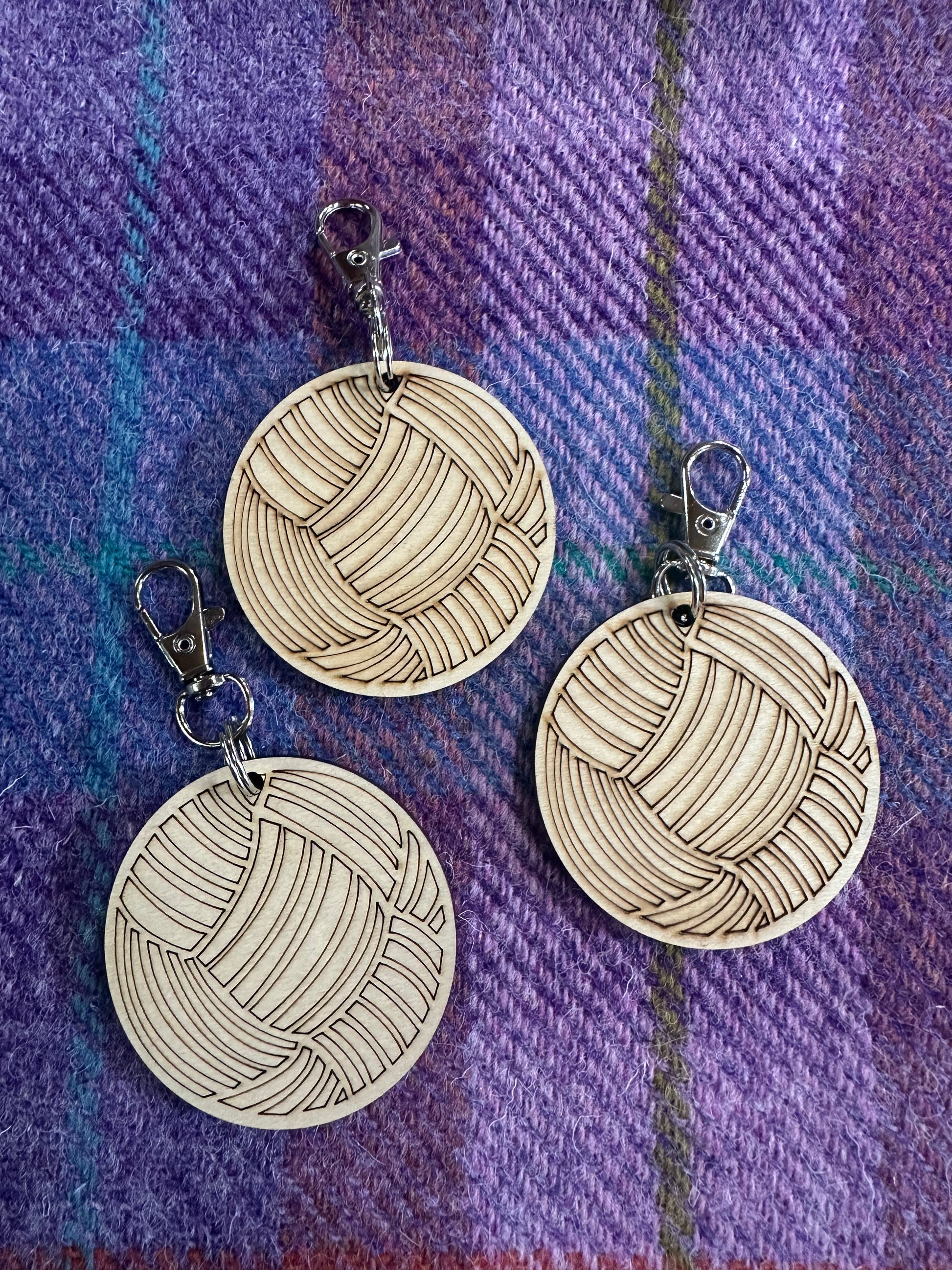 Wood keychains to add to your project bag or even use to hold stitch markers.