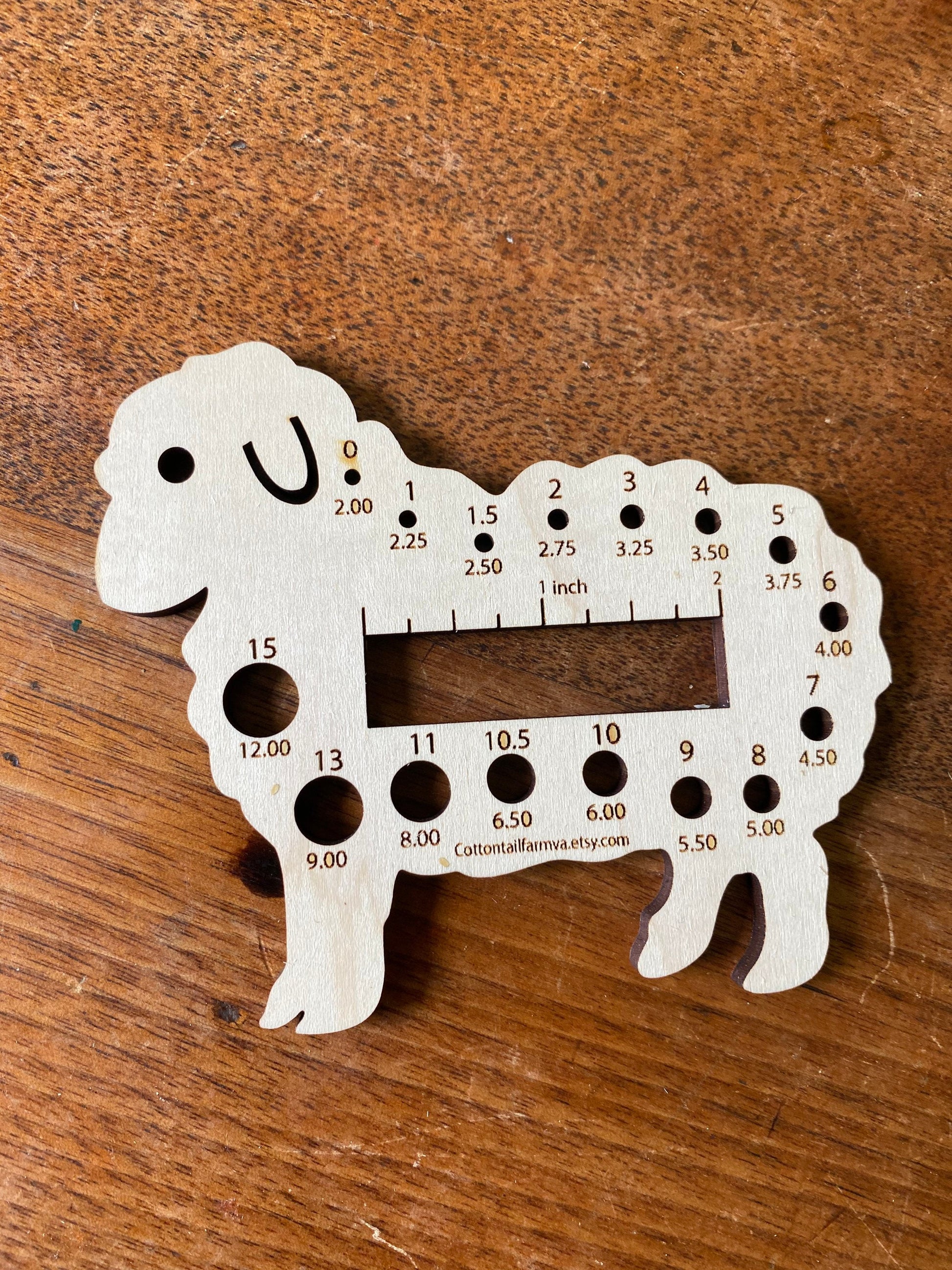 Perfect little tool to stash in your project bag. Measure your needle sizes and a handy ruler in one tool.