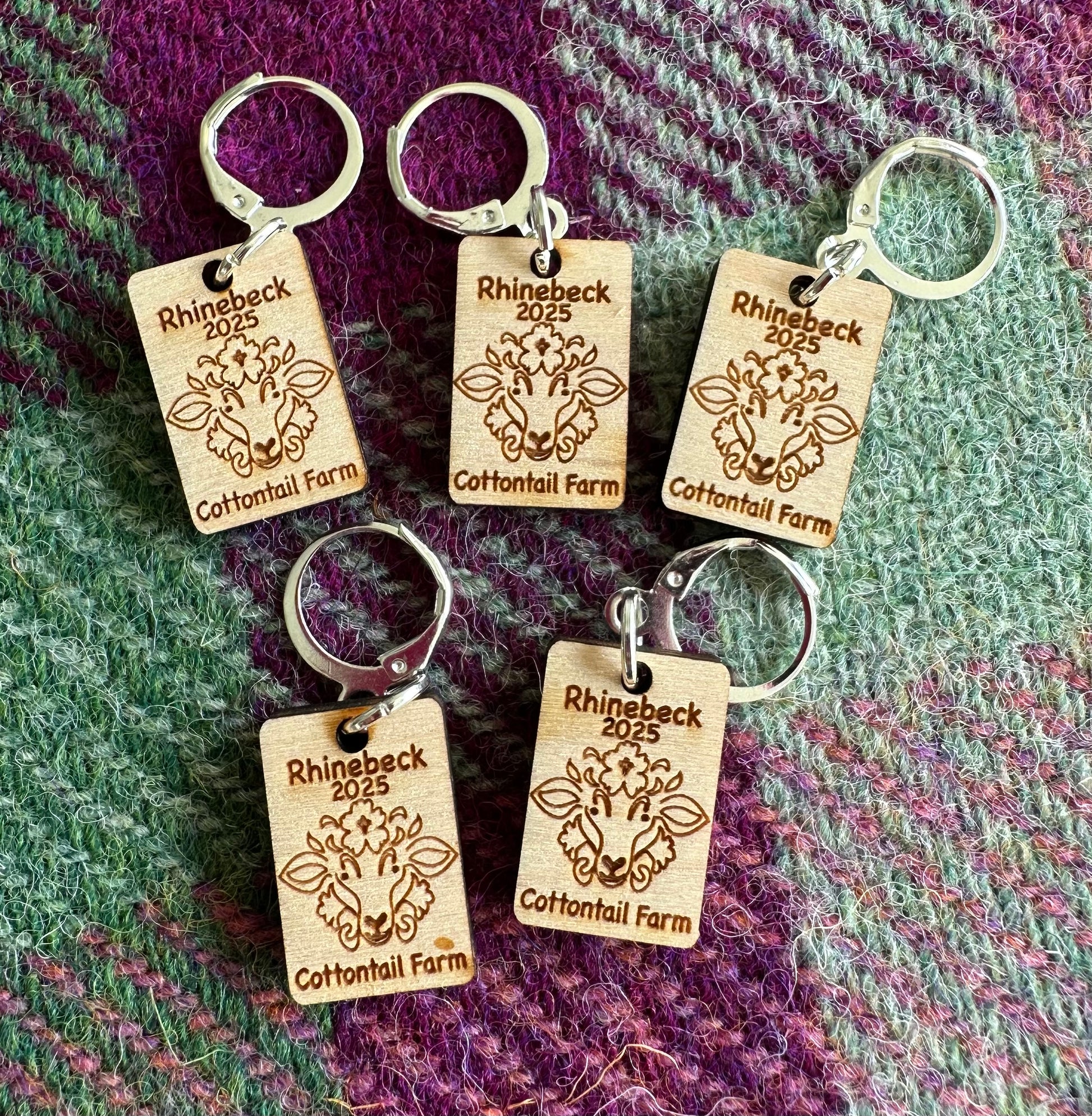 * Single wood dated Sheep Stitch marker with Leverback clasp